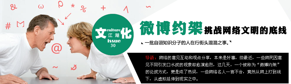 因政治觀點(diǎn)分歧而“約架”,這是中國(guó)少數(shù)網(wǎng)絡(luò)知識(shí)分子最粗鄙的表現(xiàn)之一,也是微博推動(dòng)中國(guó)民主進(jìn)程泥沙俱下帶來的一塊臟東西。無論“約架”或“應(yīng)架”,都與“勇敢”不相干,也與“風(fēng)度”或“敢作敢當(dāng)”風(fēng)馬牛不相及。