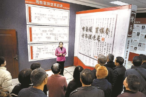 2023年10月8日,丁德芬在周氏家風(fēng)館為參觀人員講解周氏家風(fēng)家訓(xùn)的精神內(nèi)涵。