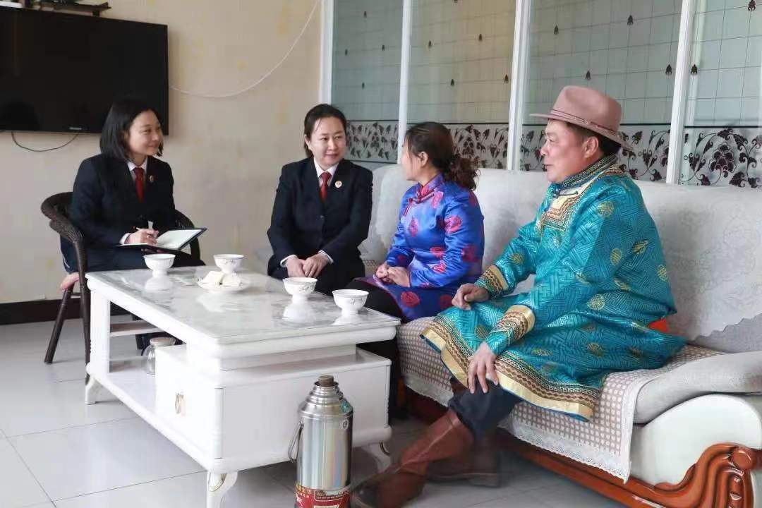 內(nèi)蒙古自治區(qū)優(yōu)秀公訴人、巴林右旗檢察院副檢察長芒來其其格(左二)工作中。