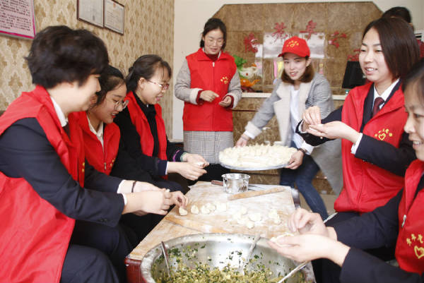 “五朵檢花”組成志愿小分隊(duì),來到敬老院為老人們包餃子獻(xiàn)愛心。