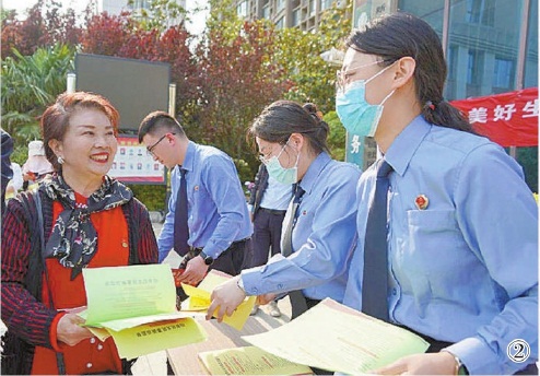 圖②:5月11日,河南省新鄉(xiāng)市檢察院聯(lián)合新鄉(xiāng)市紅旗區(qū)檢察院在誠城社區(qū)開展法治宣傳活動,讓民法典走進群眾心里。記者劉立新 通訊員孫芳攝