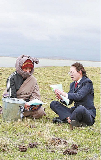 圖④:5月10日,四川省若爾蓋縣檢察院檢察官深入嫩哇鄉(xiāng)開展普法宣傳。檢察官向一位女性牧民講解民法典中關于婦女權益保護的法律條款。記者曹穎頻 通訊員郎滿塔攝