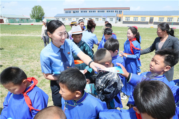 六一兒童節(jié)來之際,內(nèi)蒙古自治區(qū)克什克騰旗檢察院黨員志愿者來到達里湖畔的白音門德教學(xué)點進行法治宣講。該小學(xué)是目前內(nèi)蒙古自治區(qū)唯一一所嘎查級民族小學(xué),因基于草原游牧生活特點以集中教學(xué)和巡回教學(xué)相結(jié)合模式開展教學(xué),又被稱為“馬背小學(xué)”。檢察干警通過游戲、問答和情景演繹等模式深入講解未成年人保護相關(guān)法律知識,與孩子們共同度過了一個“法治”兒童節(jié)。沈靜芳 張明哲 李超然 攝