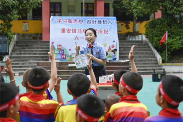 6月1日是國際兒童節(jié),也是《中華人民共和國禁毒法》實施15周年紀(jì)念日,貴州省黃平縣檢察院檢察干警來到重安鎮(zhèn)馬場小學(xué)開展以“禁毒知識進校園”為主題的慶“六一”活動。檢察干警向同學(xué)們講解毒品的種類、毒品的危害以及青少年應(yīng)該怎樣預(yù)防毒品侵害等知識。檢察干警還向同學(xué)們贈送了小禮品、發(fā)放禁毒宣傳手冊,與同學(xué)們共同度過了一個快樂而有意義的“六一”。王超 攝