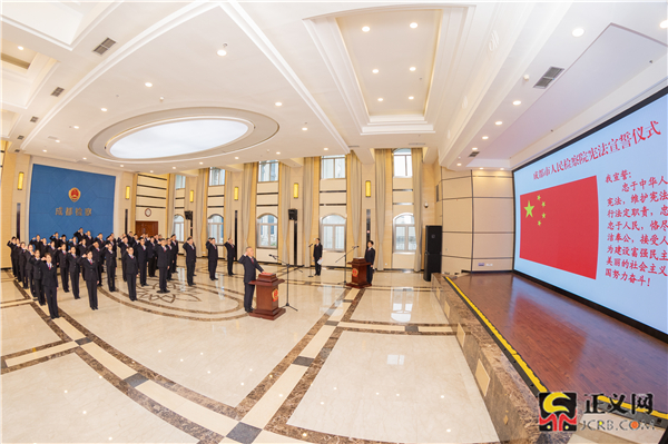 為深入學(xué)習(xí)貫徹黨的二十大精神,以高質(zhì)量的檢察履職服務(wù)保障憲法全面實(shí)施,激勵(lì)檢察人員不斷增強(qiáng)政治自覺(jué)、法治自覺(jué)、檢察自覺(jué),四川省成都市檢察院12月2日舉行憲法宣誓儀式。萬(wàn)軍 攝