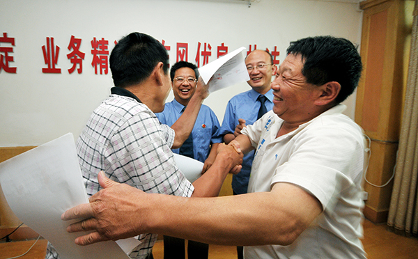 原本親如兄弟的兩個(gè)合伙人,因經(jīng)濟(jì)糾紛互相糾纏了幾年之久,身心疲憊的老哥倆在江蘇省徐州市賈汪區(qū)檢察院辦案檢察官細(xì)致耐心地引導(dǎo)調(diào)解下,最終達(dá)成和解協(xié)議。2012年7月26日,在辦案檢察官的鼓勵(lì)下,兩人簽訂協(xié)議后相互擁抱,和好如初,并向檢察機(jī)關(guān)表示由衷的感謝:“因?yàn)槟銈兊哪托暮蛨?zhí)著,幫我們化解了多年的恩怨,也徹底解開(kāi)了我們老哥倆多年的心結(jié)!”高剛 攝