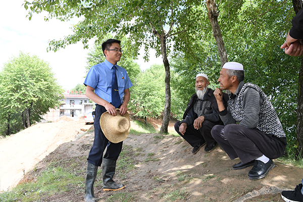 2020年6月18日,甘肅省臨夏州東鄉(xiāng)縣檢察干警從縣城出發(fā),驅(qū)車(chē)近兩個(gè)小時(shí),就該院辦理的一起案件進(jìn)行回訪。由于常年翻山越嶺奔波于扶貧和辦案一線,被紫外線灼得黝黑的檢察干警們大部分時(shí)間穿梭在鄉(xiāng)村中,草帽是大家必備的行頭之一,他們也被老百姓形象地稱(chēng)為“草帽檢察官”。南茂林 攝