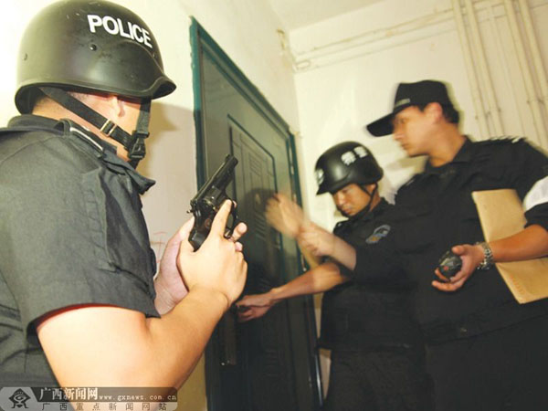 7月8日凌晨1時(shí),參加行動(dòng)的所有警力在南寧市悄悄集結(jié)。簡短的戰(zhàn)前動(dòng)員后,南寧市公安局局長廖洪濤下達(dá)了作戰(zhàn)命令。炎熱的夏夜里,數(shù)十輛滿載民警的車輛飛速駛往橫縣。