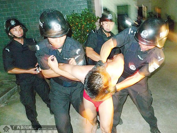 民警制服企圖反抗的1號(hào)人物。唐輝吉 段欽中 攝