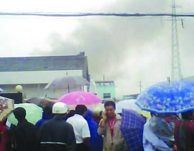 事發(fā)工廠門前圍滿人群。 姜來來 攝