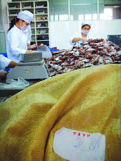 接到投訴后,記者決定前往暗訪。昨天上午,記者根據(jù)舉報(bào)人提供的地址,在南京市棲霞區(qū)邁皋橋創(chuàng)業(yè)園內(nèi),找到了南京狀元食品有限公司,記者發(fā)現(xiàn)這家食品生產(chǎn)企業(yè),是一個(gè)以包裝南北干貨、食用菌、各類蜜餞、炒貨及特色醬腌菜、泡菜為主企業(yè),長期與南京及周邊揚(yáng)州、安徽等大型賣場連鎖保持良好的合作關(guān)系。