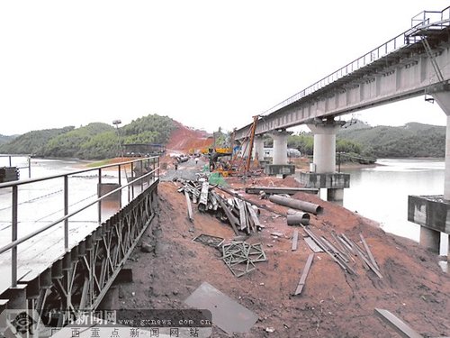 橫縣新福鎮(zhèn)關(guān)塘社區(qū)的村民看到,施工方在黎欽鐵路橫縣段飛龍河鐵路大橋邊搭起一個(gè)平臺(tái),村民擔(dān)心此舉可能影響泄洪。施工方則表示,此舉若對水位造成影響,村民應(yīng)該反思。