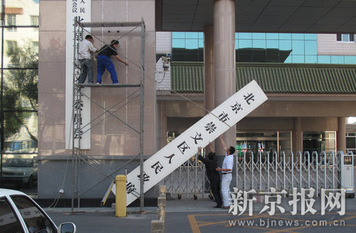 本周,新東城人大、政協(xié)將掛牌;原崇文區(qū)政府、區(qū)委牌匾將存檔,永久保存