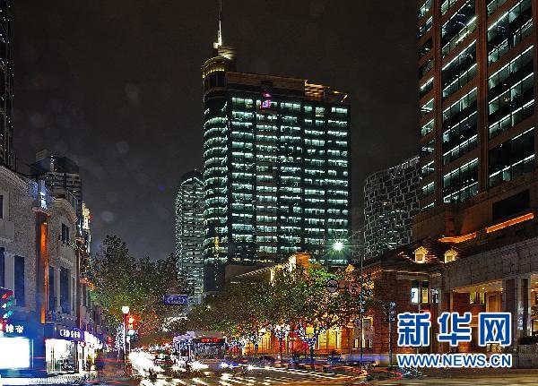 上海淮海路一處造型獨(dú)特的樓體燈。新華社發(fā)(郭長耀 攝)