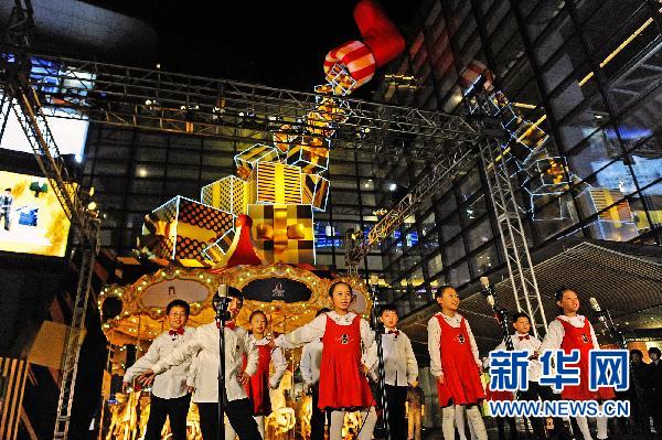 上海兒童合唱團(tuán)的小演員在新年亮燈儀式上表演節(jié)目。新華社發(fā)(郭長耀 攝)