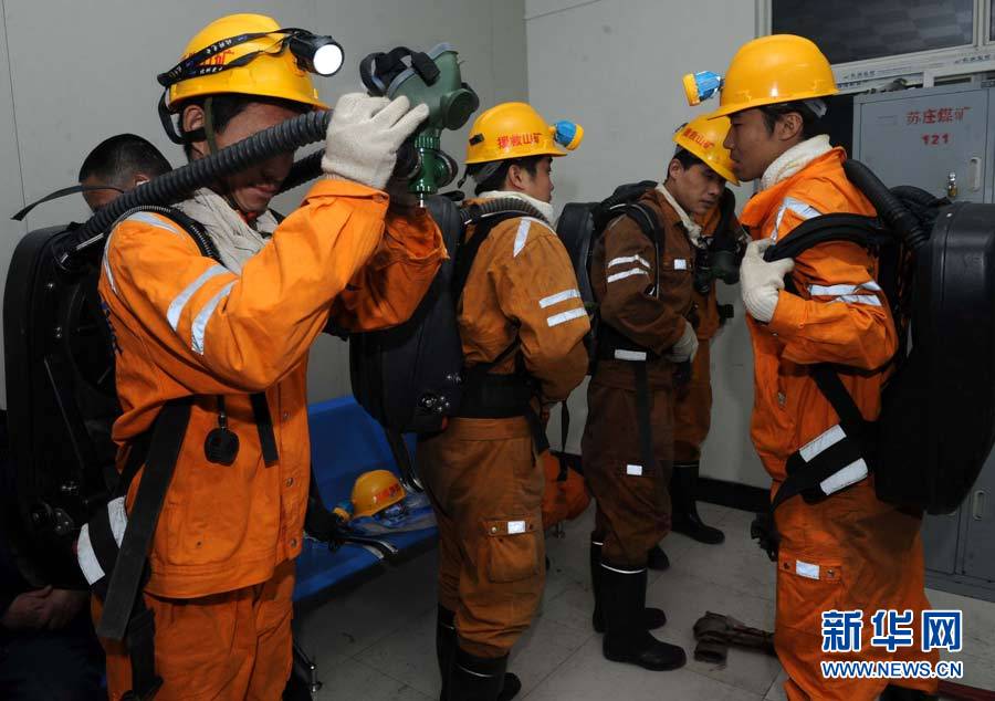 12月8日凌晨,礦山救護(hù)人員準(zhǔn)備下井開展搜尋排查工作。新華社記者 朱祥 攝