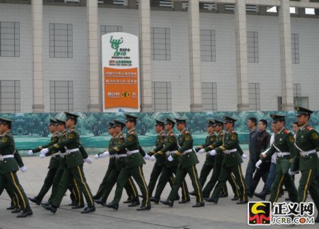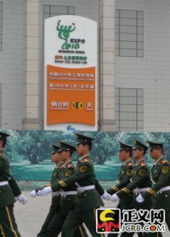 1、4月21日,在天安門地區(qū),幾名武警戰(zhàn)士從“中國2010年上海世博會倒計時牌”顯示距開幕還有10天信息前通過。