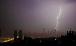 昨日凌晨2點,閃電劃過渝中區(qū)上空。重慶晨報見習記者 姚波 攝