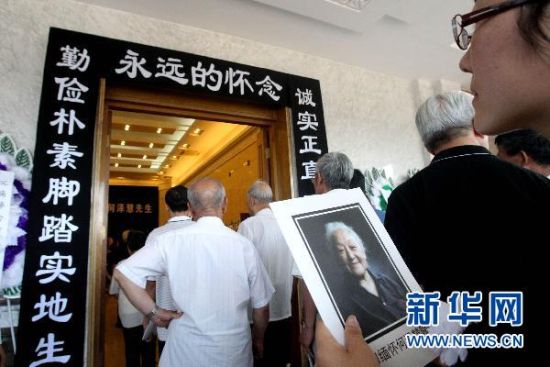 6月26日,各界人士排隊(duì)進(jìn)入遺體告別廳向何澤慧院士遺體告別。新華社記者汪永基攝