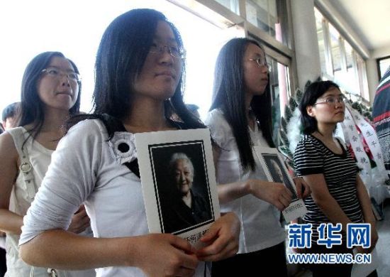6月26日,幾位女青年排隊(duì)進(jìn)入遺體告別廳向何澤慧院士遺體告別。新華社記者汪永基攝