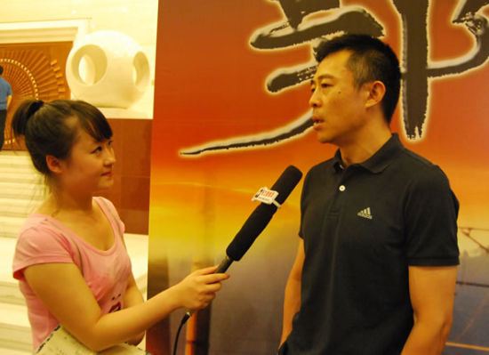 本網(wǎng)記者現(xiàn)場(chǎng)采訪郭明義的扮演者侯勇