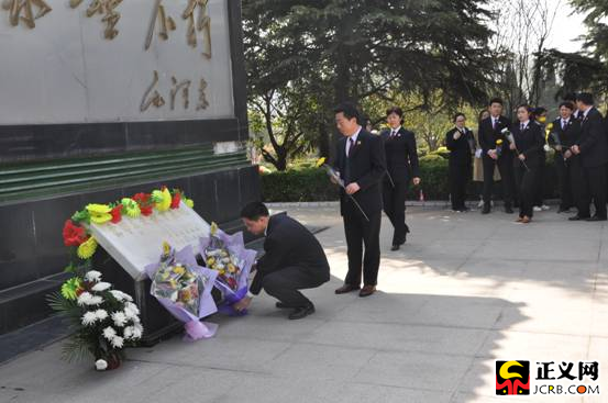 檢察干警向英烈敬獻(xiàn)鮮花。趙武 何柳 攝
