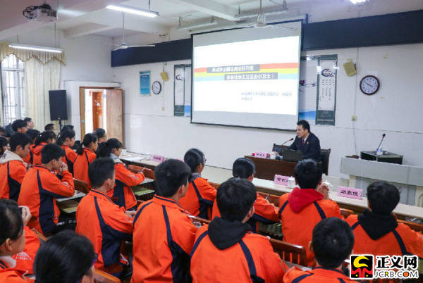 檢察長為覃塘高中學(xué)生講授法治課。