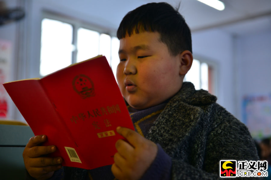 一位同學(xué)在認(rèn)真閱讀憲法。