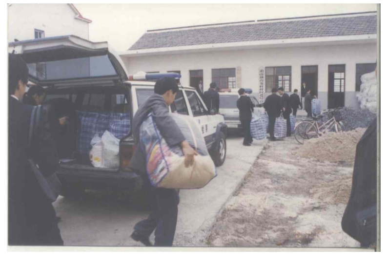 2001年10月23日,我院由副檢察長嚴(yán)建華、紀(jì)檢主任孫楓帶隊(duì)去慰問在六合冶山鎮(zhèn)青龍村鍛煉的干警程國慶、并捐贈(zèng)給村里的物資