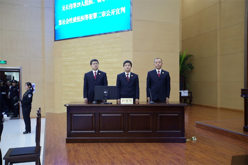 2011年11月份,被告人吳某某刑滿釋放后,先后糾集多名社會(huì)閑散人員在東營(yíng)市東營(yíng)區(qū)某酒吧收取保護(hù)費(fèi),期間多次實(shí)施違法犯罪活動(dòng),逐漸形成了以被告人吳某某為組織者、領(lǐng)導(dǎo)者的黑社會(huì)性質(zhì)組織。2017年9月30日東營(yíng)區(qū)檢察院依法向東營(yíng)區(qū)法院提起公訴。2018年8月21日東營(yíng)區(qū)法院作出一審判決,對(duì)吳某某以十項(xiàng)罪名數(shù)罪并罰判處有期徒刑二十五年,剝奪政治權(quán)利五年,并處沒(méi)收個(gè)人全部財(cái)產(chǎn),對(duì)其他被告人分別判處十八年六個(gè)月到兩年不等的有期徒刑。宣判后,吳某某等23人不服,提出上訴。市中級(jí)人民法院依法組成合議庭,通過(guò)閱卷,訊問(wèn)上訴人及原審被告人,并聽(tīng)取檢察意見(jiàn)及辯護(hù)人意見(jiàn),于2018年11月15日作出二審判決,維持原判。該案系最高人民檢察院、公安部掛牌督辦案件。