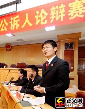 圖為:吳賀斌在全區(qū)檢察機(jī)關(guān)公訴人論辯賽上。
