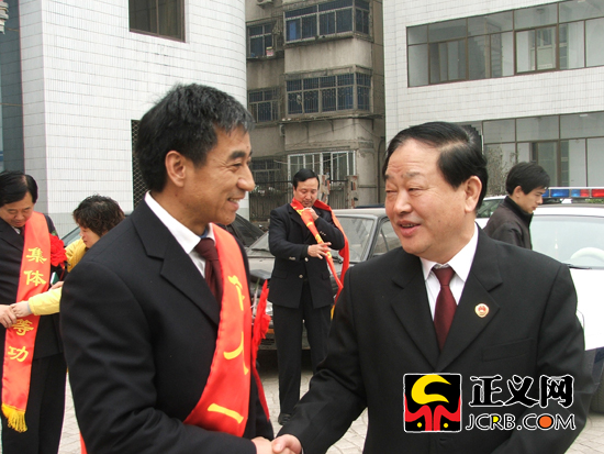 圖為葉樹群榮立一等功時(shí),河南省檢察院原檢察長王尚宇與其親切交談的舊照。