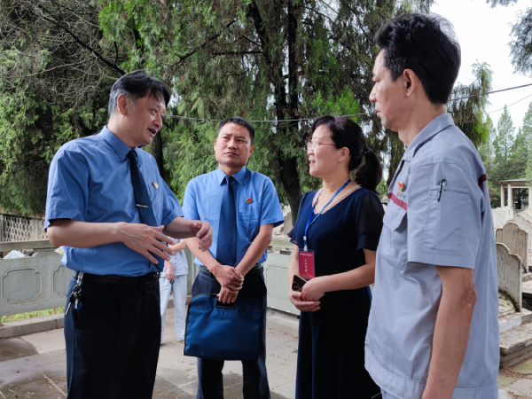 該院檢察長倪勇毅(左一)在老營革命烈士陵園向省人大代表賈經(jīng)瓊(右二)介紹案件情況。