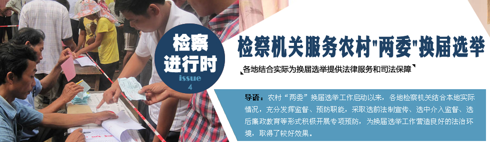 近年來,隨著農(nóng)村社會經(jīng)濟、政治生活的發(fā)展變化,基層民主觀念逐漸植根于農(nóng)民心中,民主決策受到越來越多的重視,村民委員會換屆選舉與村黨支部換屆選舉成了農(nóng)村民主政治生活的頭等大事。各地檢察機關(guān)立足檢察職能,采取有效防范措施,防止干擾、危害和破壞換屆選舉職務(wù)犯罪的發(fā)生,為確保農(nóng)村“兩委”換屆工作健康順利進(jìn)行提供了良好的法律服務(wù)和司法保障。