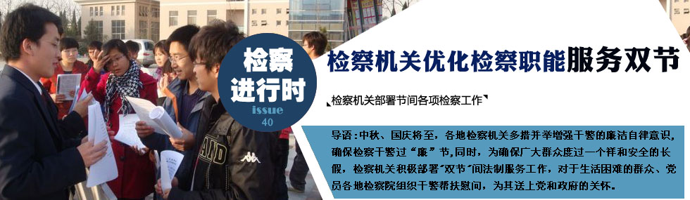 各地檢察機關以"雙節(jié)"為契機加強對領導干部的反腐倡廉教育,有效預防節(jié)日期間腐敗問題頻發(fā)現(xiàn)象,深入推進反腐倡廉建設。
