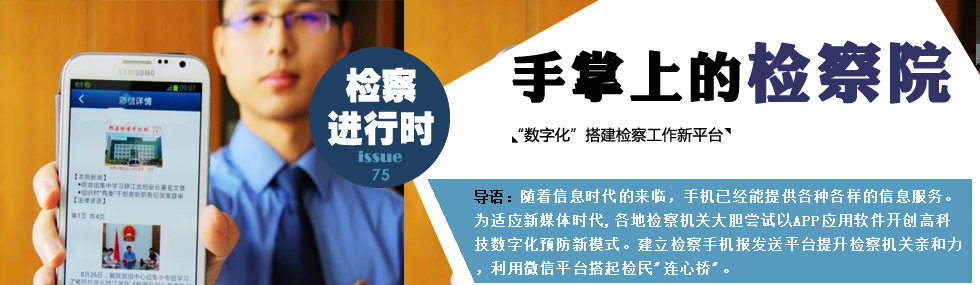 為進(jìn)一步深化檢務(wù)公開,各地檢察機(jī)關(guān)著力強(qiáng)化信息化手段,建立了檢察手機(jī)報的發(fā)送平臺,向人大代表、政協(xié)委員等各界人士發(fā)送檢察手機(jī)報。不斷提升檢察機(jī)關(guān)的親和力和社會認(rèn)知度。