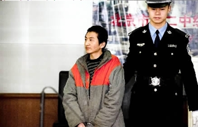 被告人石柏魁被帶入法庭。 本報(bào)見習(xí)記者楊征攝