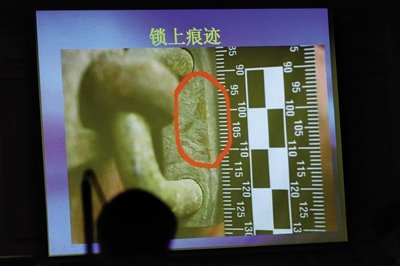 石柏魁在展覽展品的柜子前嘗試多種方法,最后找到展柜最容易破拆的地方,敲碎玻璃,鉆進展柜,盜竊了9件展品。