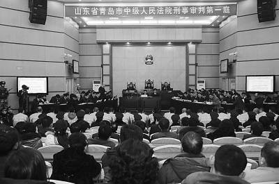 聶磊涉黑案開庭現(xiàn)場。青島市中級人民法院供圖