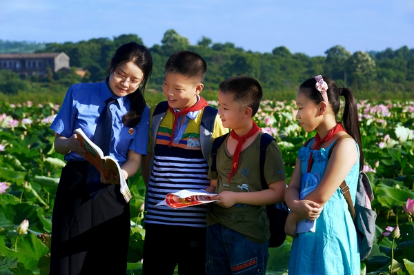 2010年9月,江西省豐城市人民檢察院和市教育局兩部門聯(lián)手共同開展 “法律進(jìn)校園”活動。活動包括選聘若干名優(yōu)秀檢察官為“法制副校長”,定期到學(xué)校積極開展法制宣傳教育工作。圖為2012年6月27日,該院檢察官“法制副校長”來到本市曲江小學(xué),在校園附近的蓮池邊開展青少年法制教育和廉潔教育。