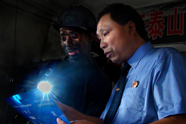 近年來,江西省豐城市檢察院高度重視礦區(qū)職務(wù)犯罪預(yù)防和安全生產(chǎn)。圖為該院河?xùn)|檢察室干警深入轄區(qū)內(nèi)國有流舍礦開展法律知識和安全責(zé)任專題宣傳。