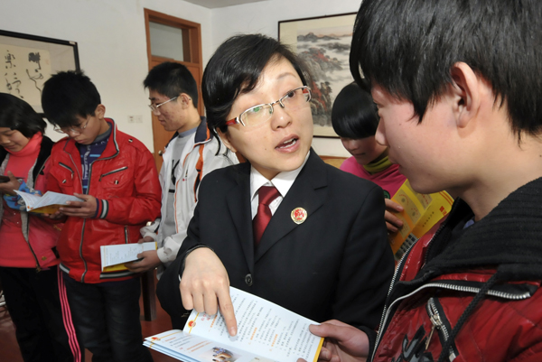江蘇徐州賈汪區(qū)檢察院采取循序漸進(jìn)、以班干部為點(diǎn)、以點(diǎn)帶面的方式,到轄區(qū)中學(xué)進(jìn)行法律普及講座,結(jié)合當(dāng)前所查辦的典型涉及校園犯罪案件,向班干部和學(xué)習(xí)骨干們講授 未成年人犯罪 的概念、罪名、立案標(biāo)準(zhǔn)、形成原因、刑法處罰等內(nèi)容。圖為檢察官就學(xué)生經(jīng)常遇到的法律問題進(jìn)行解答。