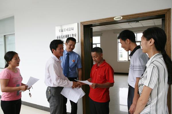 2012年7月17日,江西省安遠縣檢察院與縣司法局聯(lián)合成立的"安遠縣司法局駐檢人民調(diào)解工作室"迎來首例調(diào)解案件。經(jīng)過數(shù)小時的調(diào)解,廖、謝兩家自愿達成了賠償諒解協(xié)議,并握手言和、互相安慰。