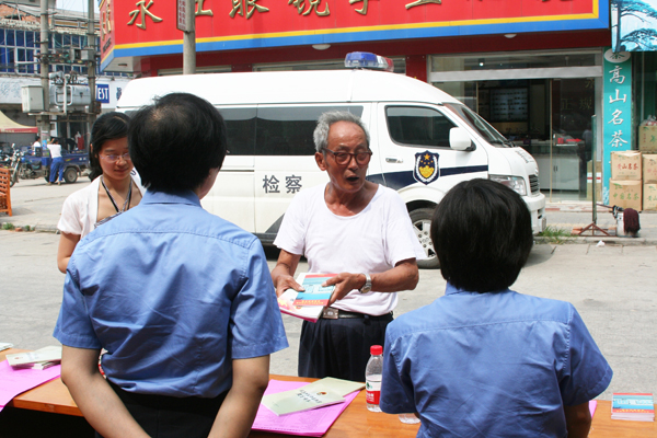 2012年6月下旬,舉報(bào)宣傳周的日子里,安徽省蕪湖市鳩江區(qū)人民檢察院的檢察官,采用巡回宣傳舉報(bào)知識(shí)的方式深入街道、鄉(xiāng)鎮(zhèn)、社區(qū)進(jìn)行舉報(bào)知識(shí)宣傳。將舉報(bào)宣傳、深入群眾和踐行弘揚(yáng)"忠誠(chéng)、為民、公正、廉潔"的政法干警核心價(jià)值觀主題教育活動(dòng)緊密聯(lián)系。