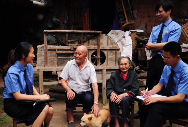 今年以來,四川省簡陽市檢察院積極開展對困難群體的幫扶救濟(jì)活動,建立了下訪、回訪和司法救助制度,使涉法上訪案得到有效預(yù)防和減少。圖為該院檢察官近日走訪農(nóng)村留守老人家庭,主動上門排憂解難,切實(shí)維護(hù)留守老人的合法權(quán)益。