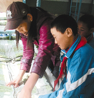 多年來,每當(dāng)學(xué)生遇到困難時,白瑪?shù)录紩斐鰺崆橹謳椭麄。一年級的卓瑪、索曲不會洗衣?白瑪?shù)录徒?jīng)常幫助她們換洗衣褲;五年級的扎西平措生病,白瑪?shù)录谜莆盏闹R幫他減輕痛苦……同事普布說:“她是既當(dāng)老師又當(dāng)保姆,這樣的故事多得說也說不完!