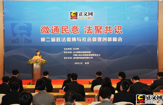 12月8日上午9時,由檢察日報正義網(wǎng)舉辦的"政法微博與社會管理創(chuàng)新"峰會在北京舉行。本次峰會邀請百余位政法界微博代表,共同探討政法微博如何"織出公信,贏得民心"。