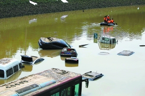 救援隊員胡喜鵬告訴記者,他是天津的一名潛水教練,昨天早上他和隊員從天津趕到現場后,就穿上潛水服到水下摸排。“最深的地方估計有6米深。”小胡和他的隊員說,水下的能見度為“零”,什么都看不見,排查完全靠手去感觸!暗谝惶斐醪脚挪楣烙嬘81輛車。”藍天救援隊的“重金屬”告訴記者,今天凌晨隨著水的逐漸退出,已經有大約40輛車被轉移出來。從目前的情況看,今天晚上這里的水有望全部都抽干。