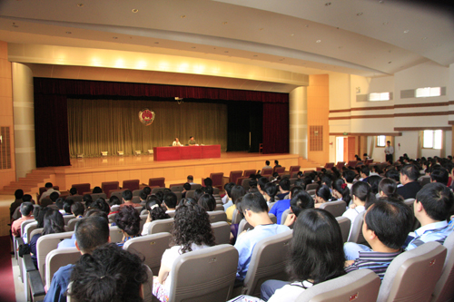 龍宗智為廣元市檢察院解讀新刑訴法 廣元市檢察院可容納200余人的會(huì)議廳座無(wú)虛席,在座的檢察干警仔細(xì)聆聽(tīng)龍宗智教授的精彩演講,氣氛緊張而又濃烈。 |