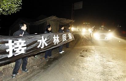 車隊(duì)停在收費(fèi)站外,工友默默走下,將車掛上白花,輕輕擦拭水林的遺像,其實(shí)上面根本就沒有灰塵。似乎是近鄉(xiāng)情更怯,離家鄉(xiāng)越近,他們心就越緊張。有工友情不自禁地對(duì)遺像說(shuō):“水林哥,我們回家!有很多人在接你啊!”啜泣聲隨之四起。